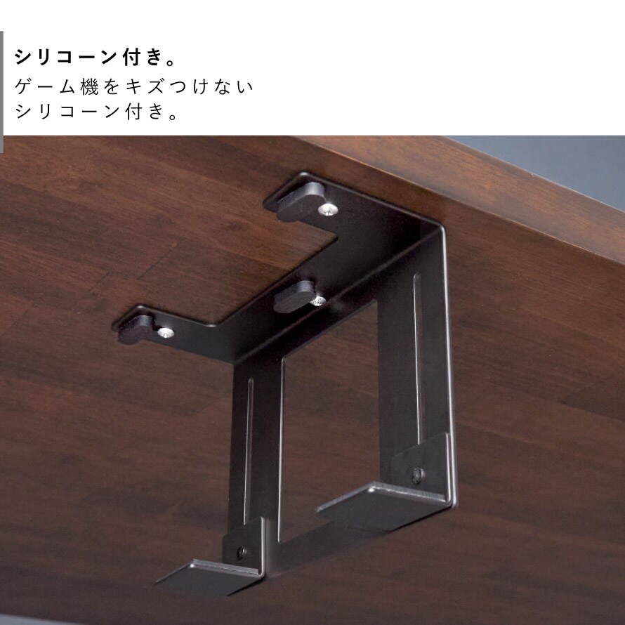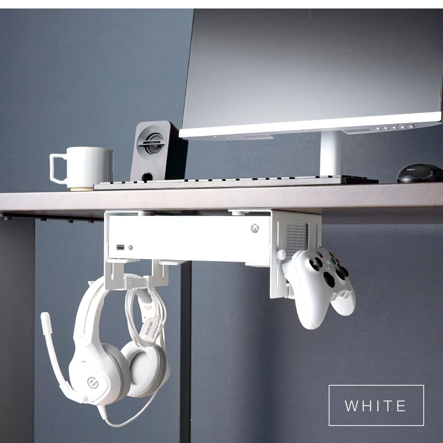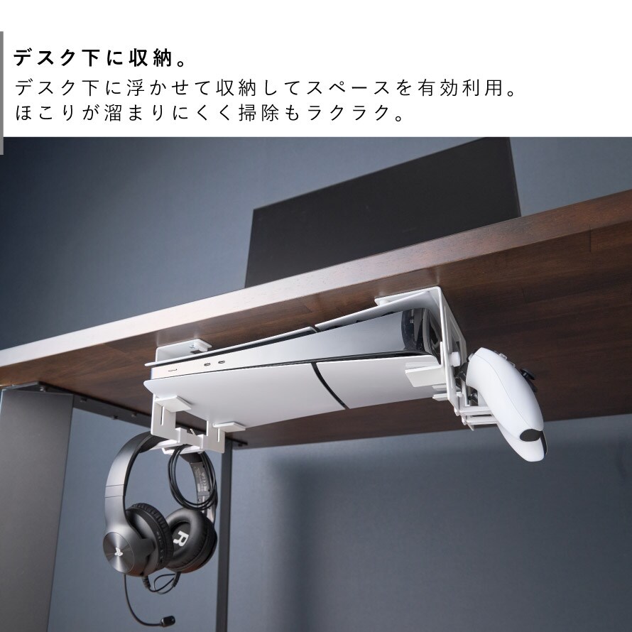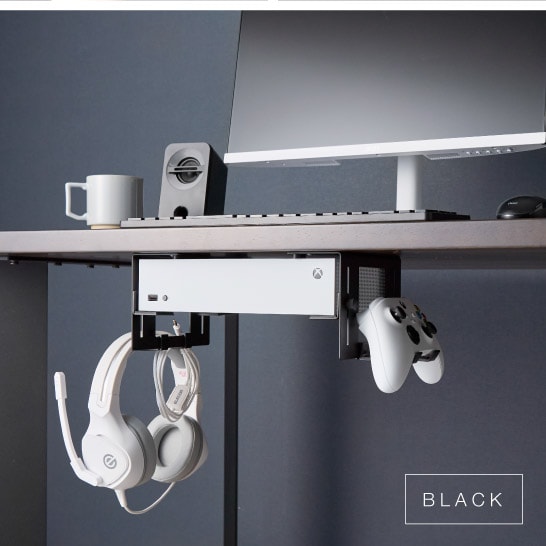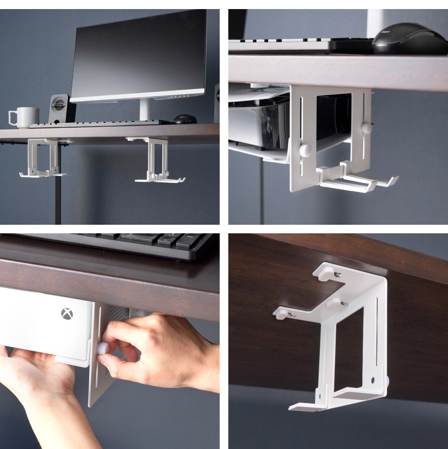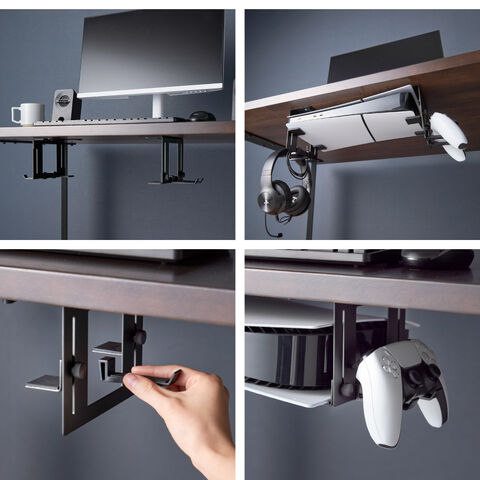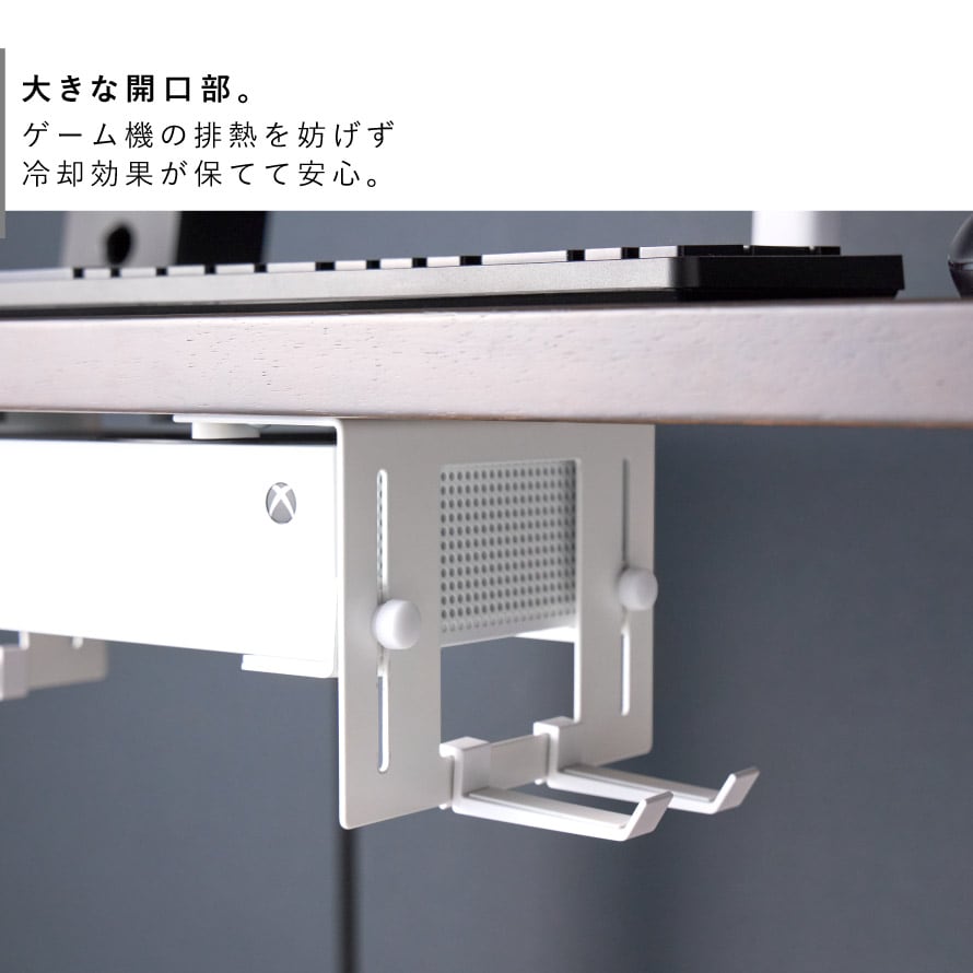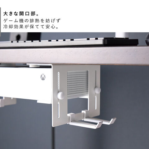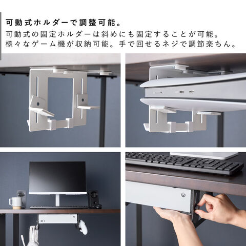 場所をとるゲーム機をデスク下に収納。スペース有効のホルダー。