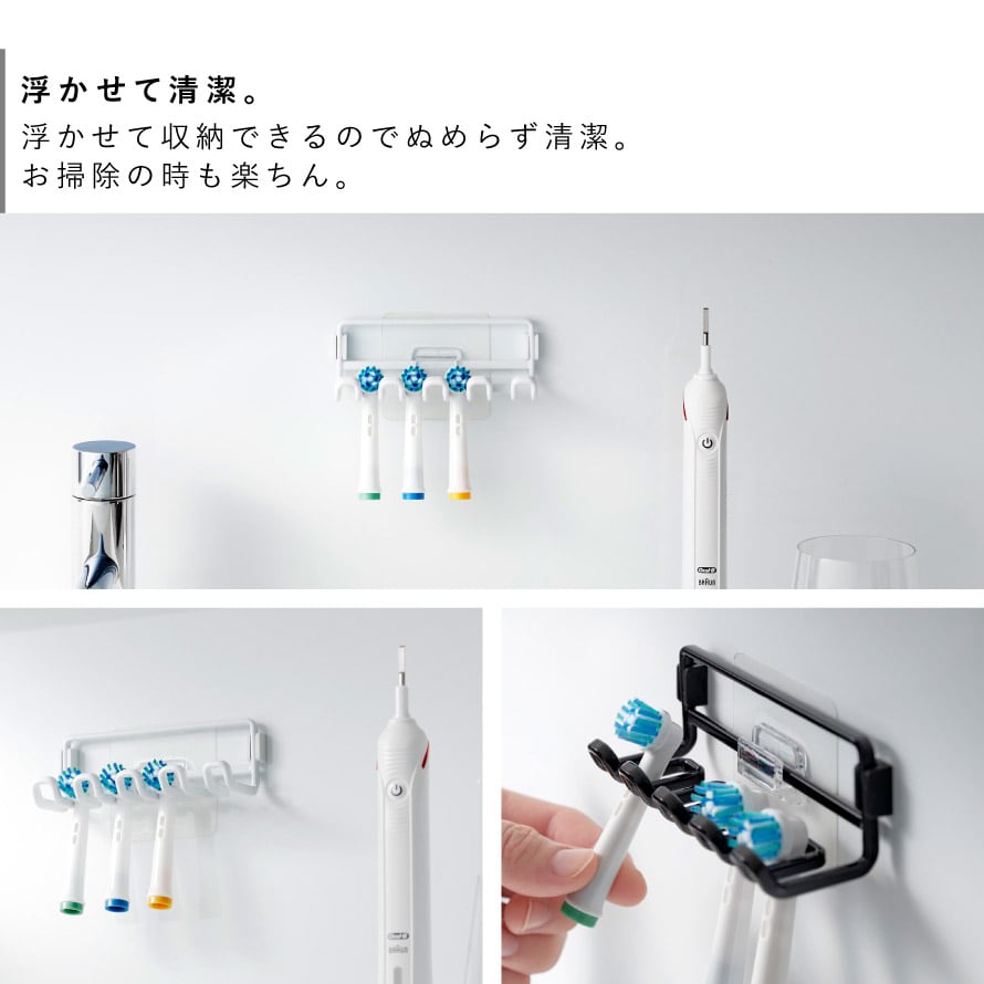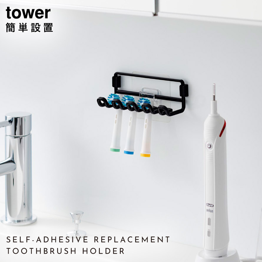 【ポイント5倍】フィルムフック替え歯ブラシホルダー タワー 山崎実業 tower 電動歯ブラシ 替えブラシ 浮かせる 洗面所 収納 おしゃれ モノトーン ホワイト ブラック 10223 10224