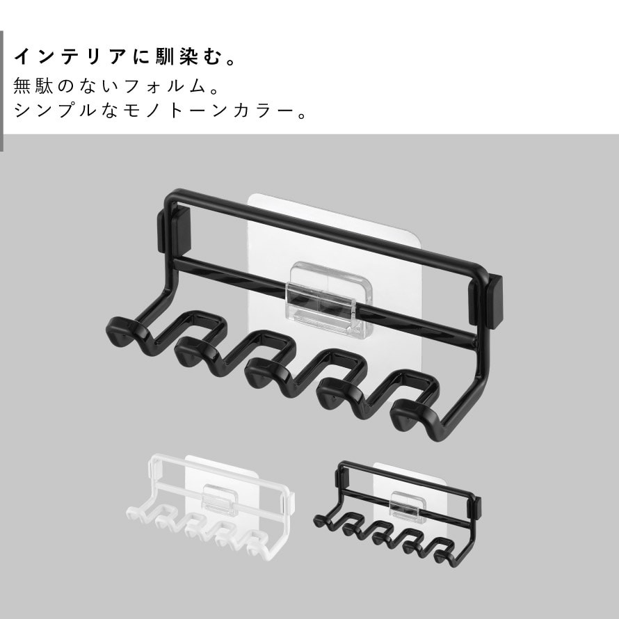 水に強く目立ちにくい貼って剥がせるフィルムフックで、お好きな場所に簡単設置。デッドスペースを有効利用できます。