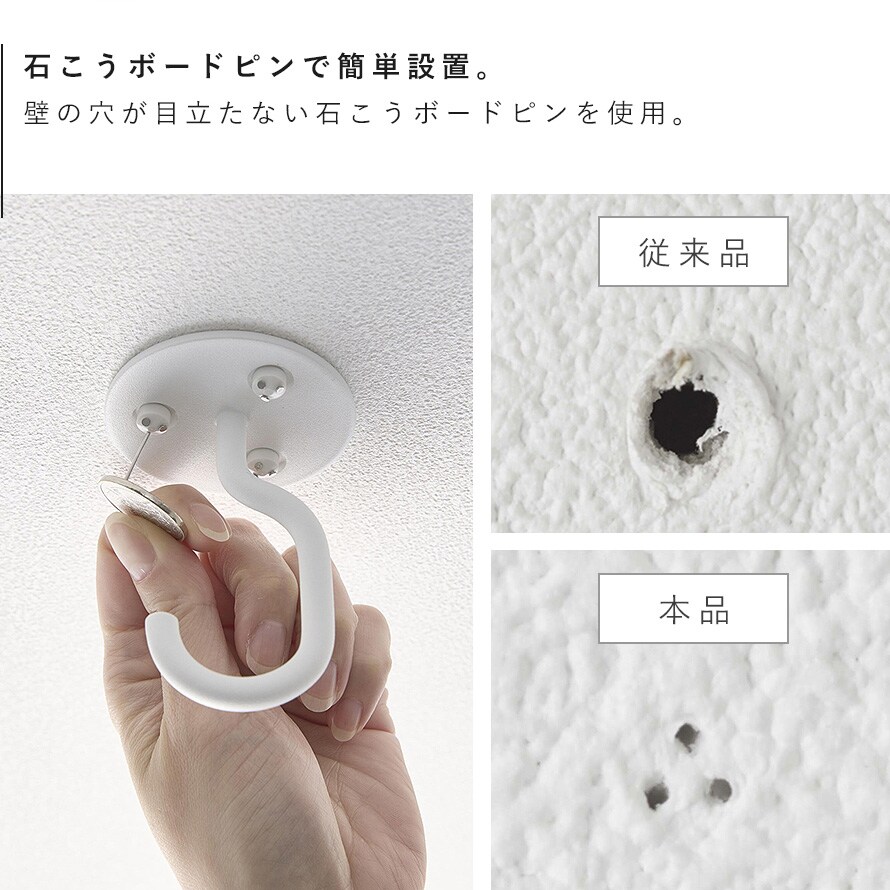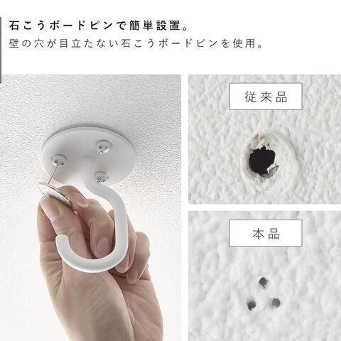 壁の穴が目立たない石こうボードピンで簡単取付。