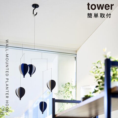 【ポイント5倍】天井から吊り下げできるプランターフック タワー 石こうボード壁対応 山崎実業 tower プランター 吊り下げ 室内 壁掛け ハンギング おしゃれ モノトーン ホワイト ブラック 10227 10228