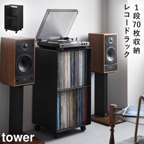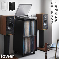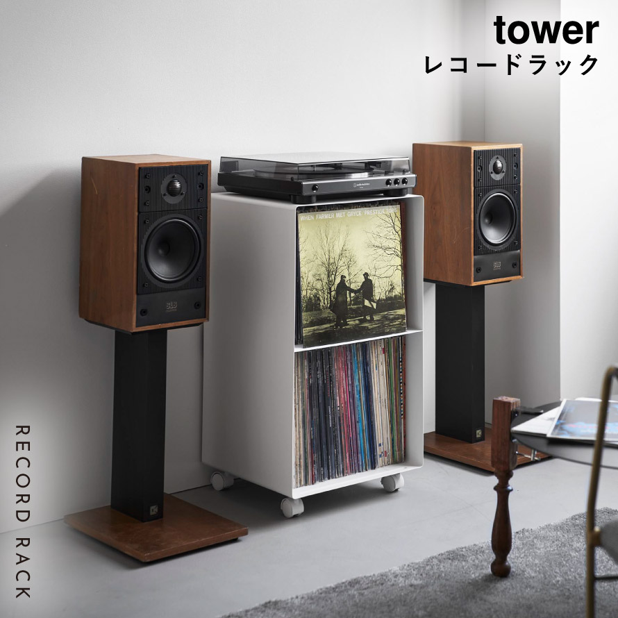 レコードラック タワー 山崎実業 tower レコードラック レコード 収納棚 キャスター付き ラック 大容量 おしゃれ モノトーン ホワイト ブラック 10229 10230