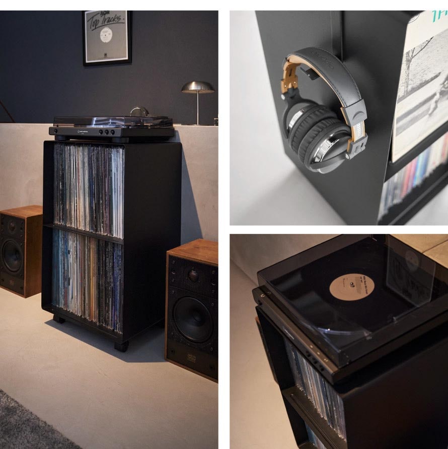 天面には幅37×奥行40cmまでのレコードプレーヤーを置くことができます。