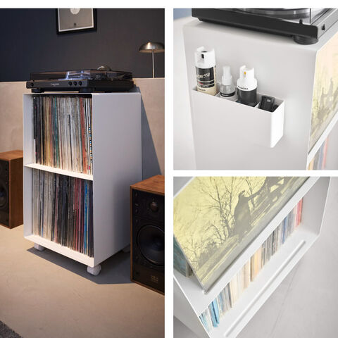 上段、下段棚ともに、お気に入りのレコードジャケットを立ててディスプレイできる溝があります。