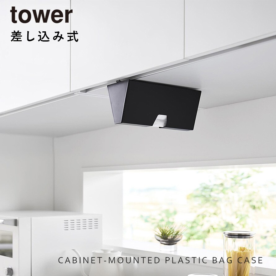 戸棚下プラスチックバッグケース タワー 山崎実業 tower アイラップ ポリ袋 収納ケース 戸棚下収納 吊り下げ おしゃれ モノトーン ホワイト ブラック 10252 10253
