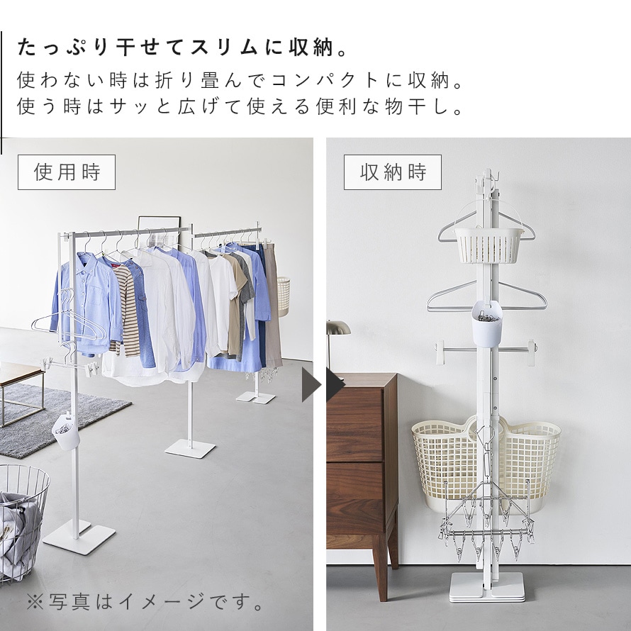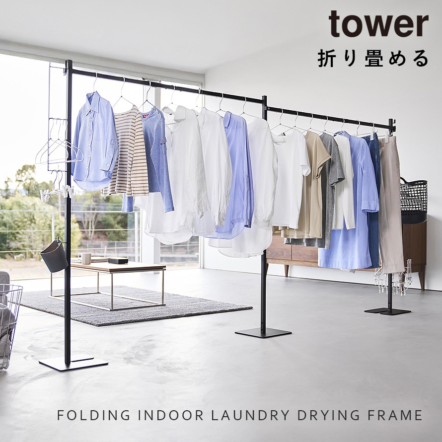 折り畳み室内物干し タワー 2連 山崎実業 tower 部屋干し 物干し スタンド 室内干し スリム 折りたたみ コンパクト おしゃれ モノトーン ホワイト ブラック 10266 10267