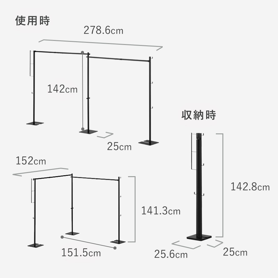 | サイズ | 使用時/幅278.6×奥行25×高さ142cm、収納時/幅25.6×奥行25×高さ142.8cm |