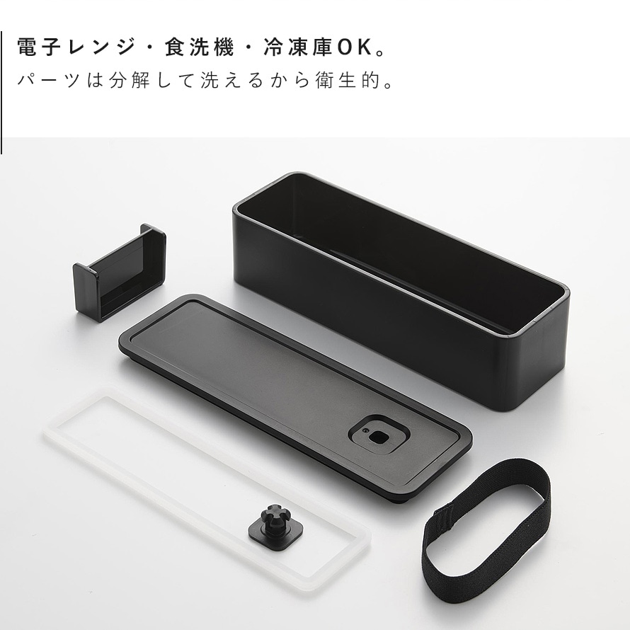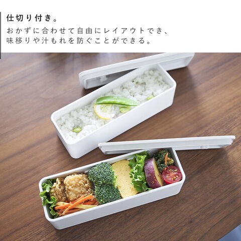 おかずに合わせて自由にレイアウトできる仕切り付き。味移りを防ぐことができます。