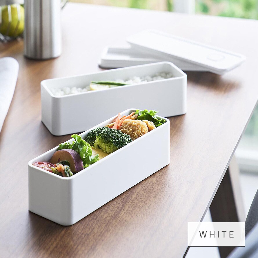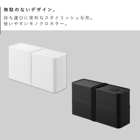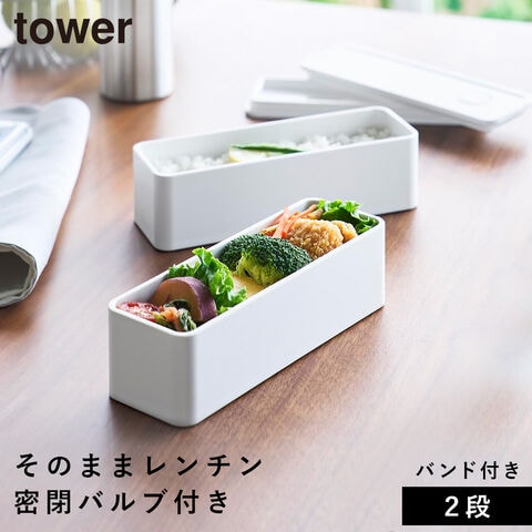 バルブ付き密閉ランチボックス タワー 2段 スリム 山崎実業 tower 弁当箱 スリム 2段 密閉 レンジ対応 食洗機対応 おしゃれ モノトーン ホワイト ブラック 10272 10273