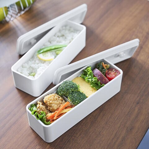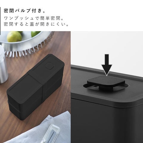 バルブをプッシュするだけで簡単に密閉できる、2段式のランチボックスです。