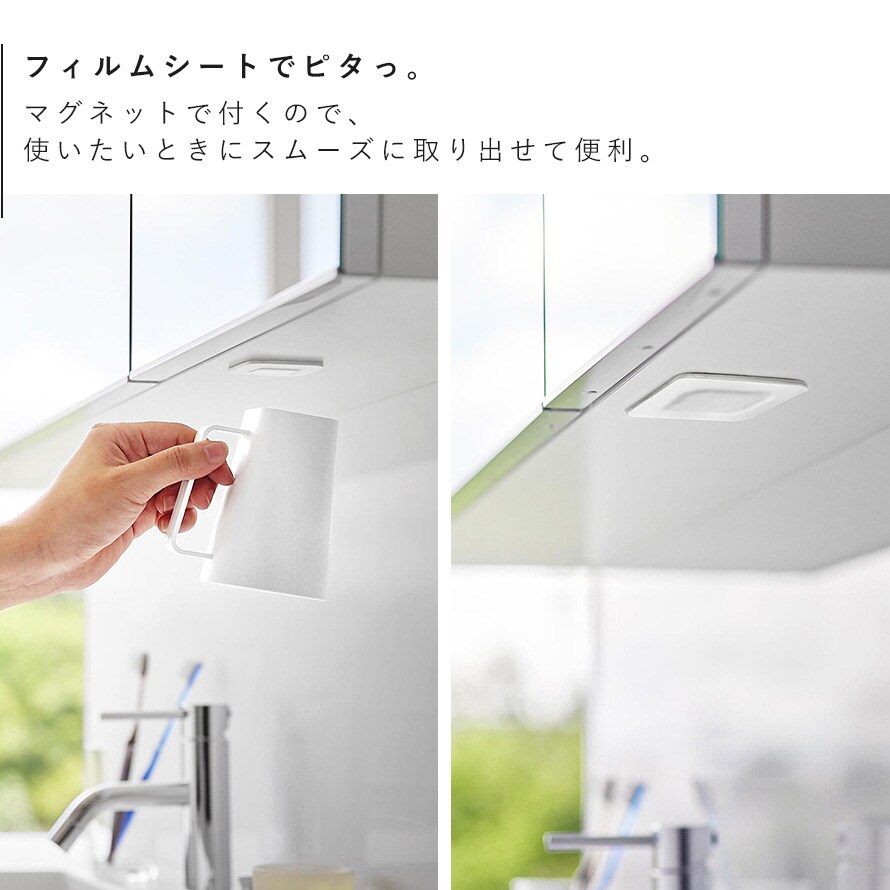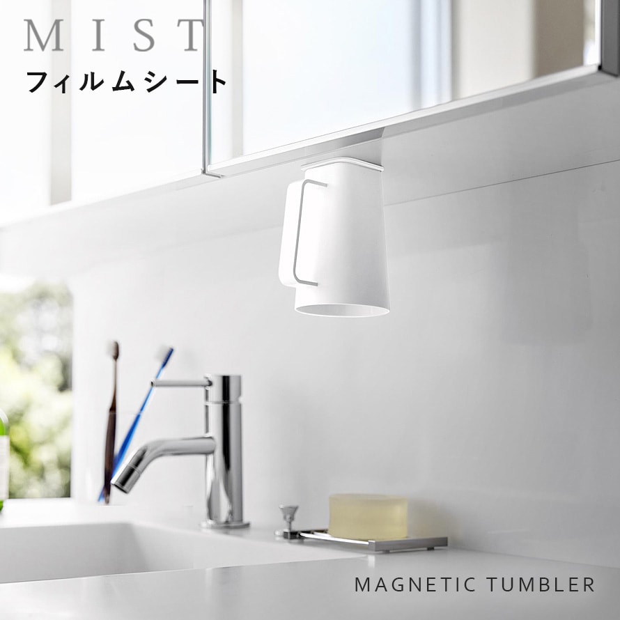 フィルムシート洗面戸棚下マグネット取っ手付きタンブラー ミスト ホワイト 山崎実業 MIST おしゃれ モノトーン ホワイト 白 10280