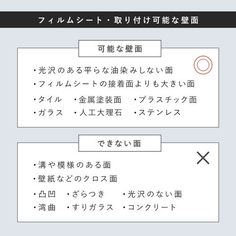 壁面にやさしいフィルムシートで、簡単に貼りやすく剥がしやすい。
