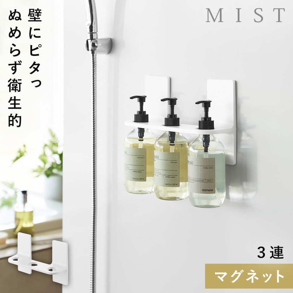 マグネットディスペンサーホルダー ミスト 3連 山崎実業 MIST シャンプー 壁掛け シャンプーボトル 壁 ディスペンサー 磁石 おしゃれ モノトーン ホワイト 白 10282