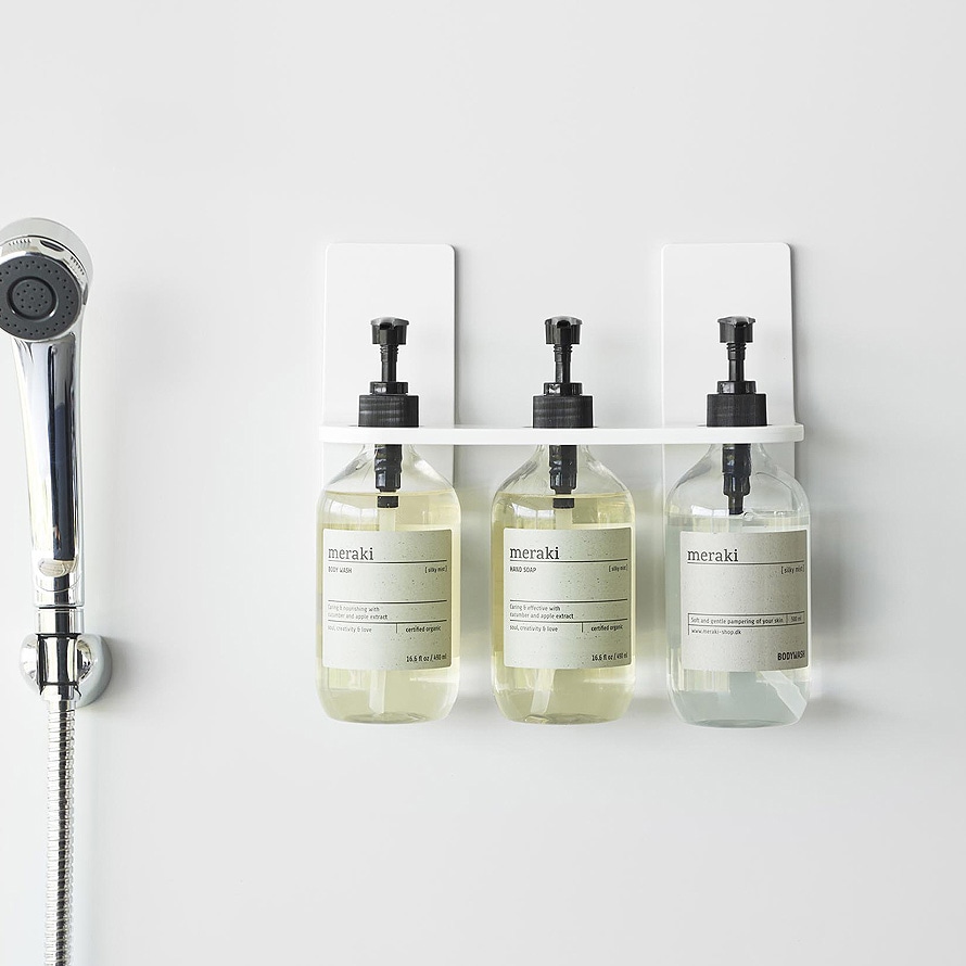 シャンプー、コンディショナー、ボディーソープなどをまとめて一括収納できます。
