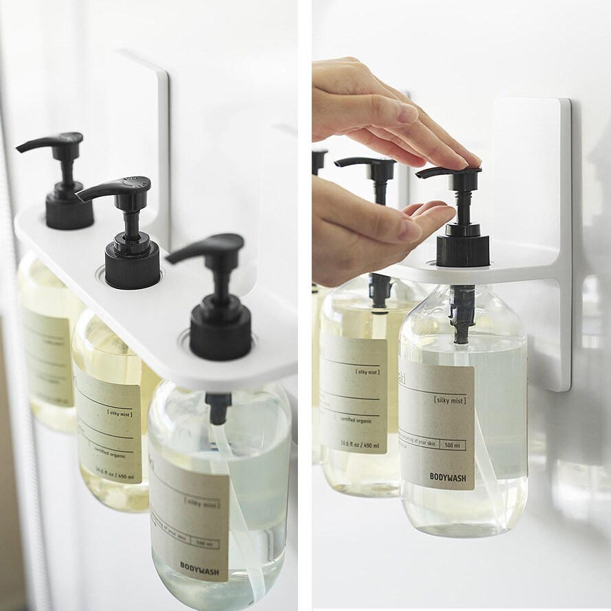 マグネットでお好みの位置に設置できる、ディスペンサー3連ホルダー。