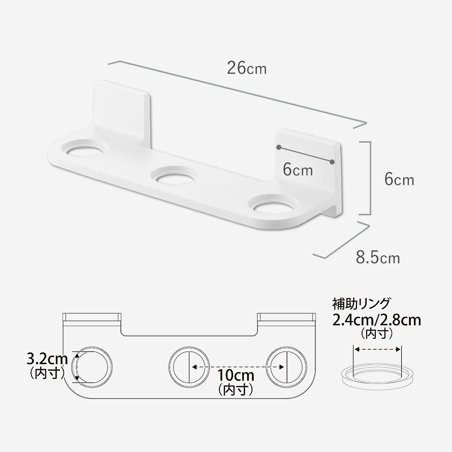 サイズ幅26×奥行8.5×高さ6cm(フィルムフック含まず) フィルムフック接着面/幅6×高さ6cm