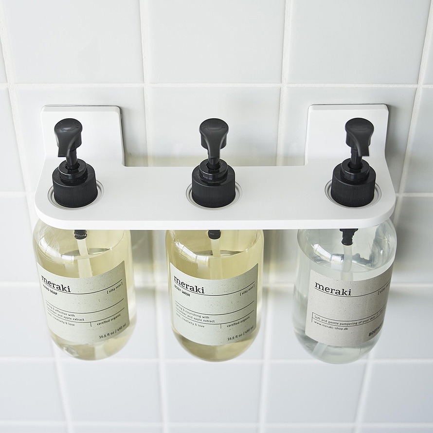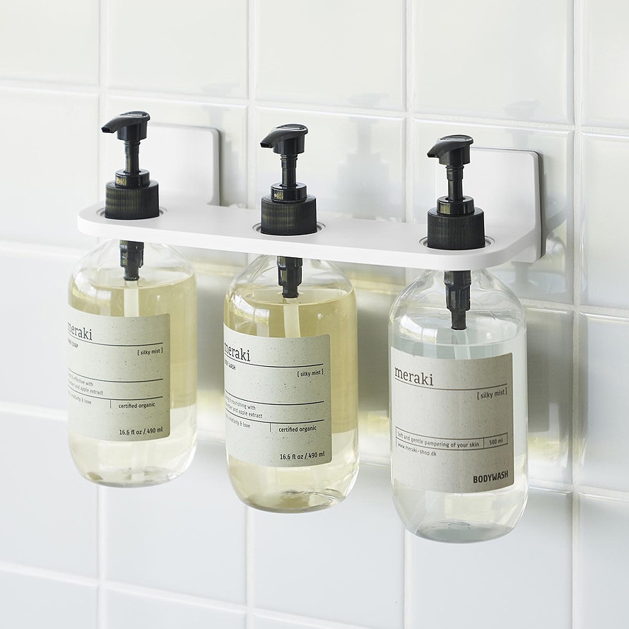 フィルムフックでお好みの位置に設置できる、ディスペンサー3連ホルダー。