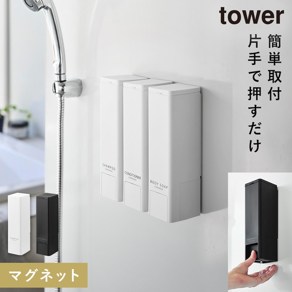下から出るマグネットディスペンサー タワー 山崎実業 tower シャンプー ディスペンサー マグネット 磁石 おしゃれ モノトーン ホワイト ブラック 10290 10291 10292 10293 10294 10295