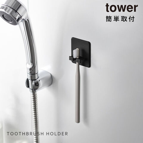 シリコーン吸盤歯ブラシホルダー タワー 山崎実業 tower 歯ブラシホルダー 吸盤 壁 浮かせる おしゃれ モノトーン ホワイト ブラック 10296 10297