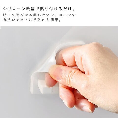 | 使用できる面 | 光沢のある平らな油染みしない面で吸着面よりも大きい面(タイル・プラスチック・ステンレス・ガラス・鏡面(ミラー)) ※表面加工・材質・状態などによっては貼り付けできない場合があります。 |