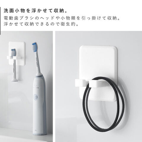 電動歯ブラシのヘッドや、ヘアゴムなどの小物類も引っ掛けて収納できます。