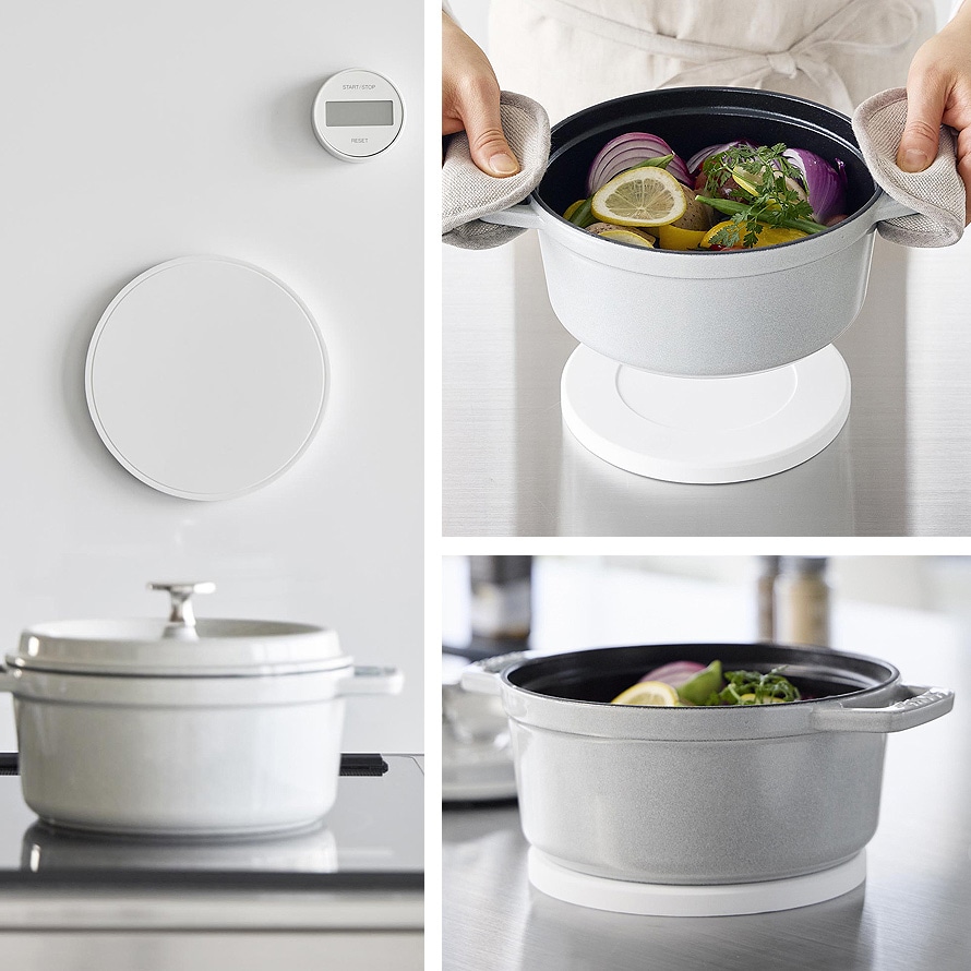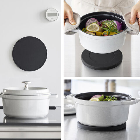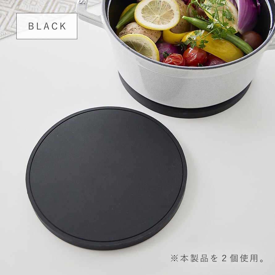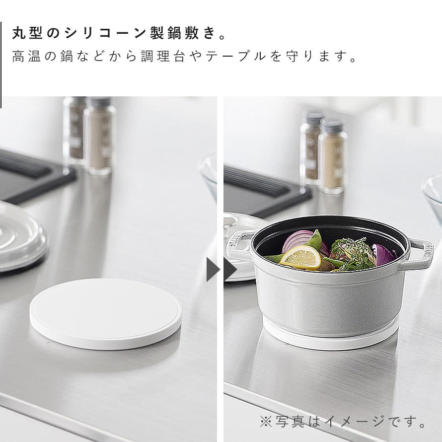 熱に強く、滑りにくい丸型のシリコーン製の鍋敷きです。