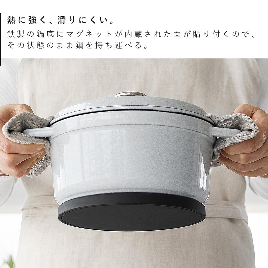 お鍋をマグネット面に載せて鍋敷きを付けたまま、そのまま食卓へ運べるので便利。