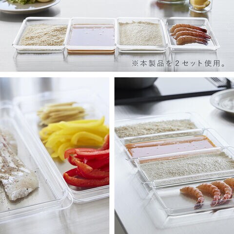 もう1セットそろえて、薄力粉・パン粉・溶き卵・具材と分けて使えるから準備もしやすい。