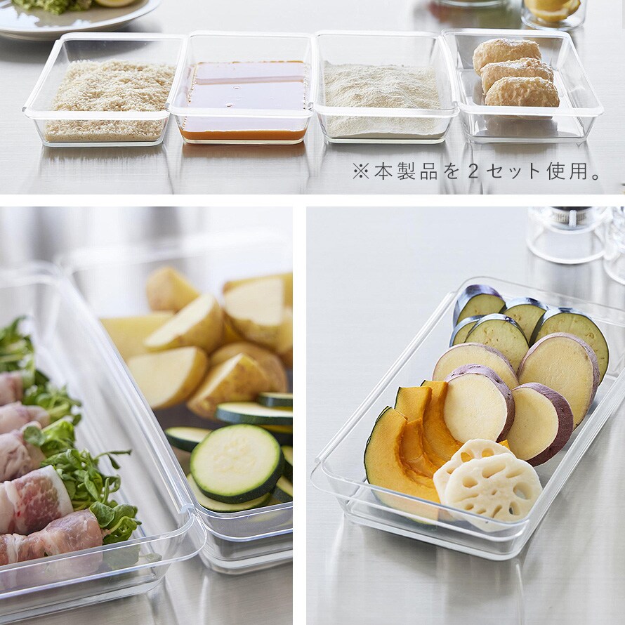 電子レンジ対応連結できる洗いやすい下ごしらえ調理トレータワー 深型 2個組 クリア 山崎実業 tower 調理 揚げ物 バット 料理 おしゃれ 10337