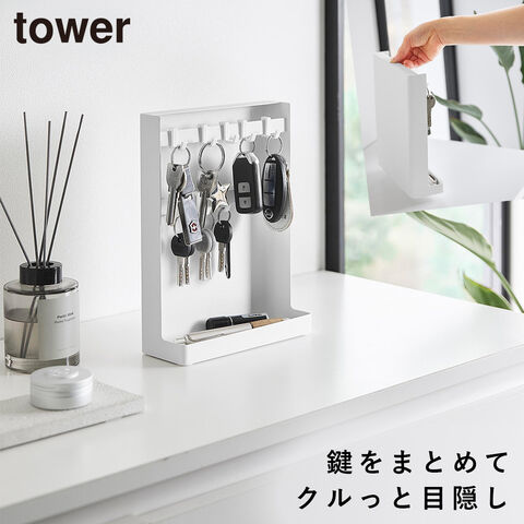 目隠しキーフックスタンド タワー 2段 山崎実業 tower キーフック スタンド キーフックスタンド 玄関 鍵収納 おしゃれ モノトーン ホワイト ブラック 10340 10341
