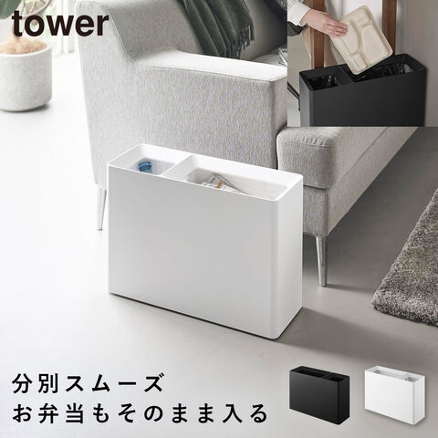 スーパー・コンビニ弁当がそのまま入る分別ダストボックス タワー 山崎実業 tower ゴミ箱 スリム 蓋なし 分別 ダストボックス 大容量 おしゃれ モノトーン ホワイト ブラック 10354 10355