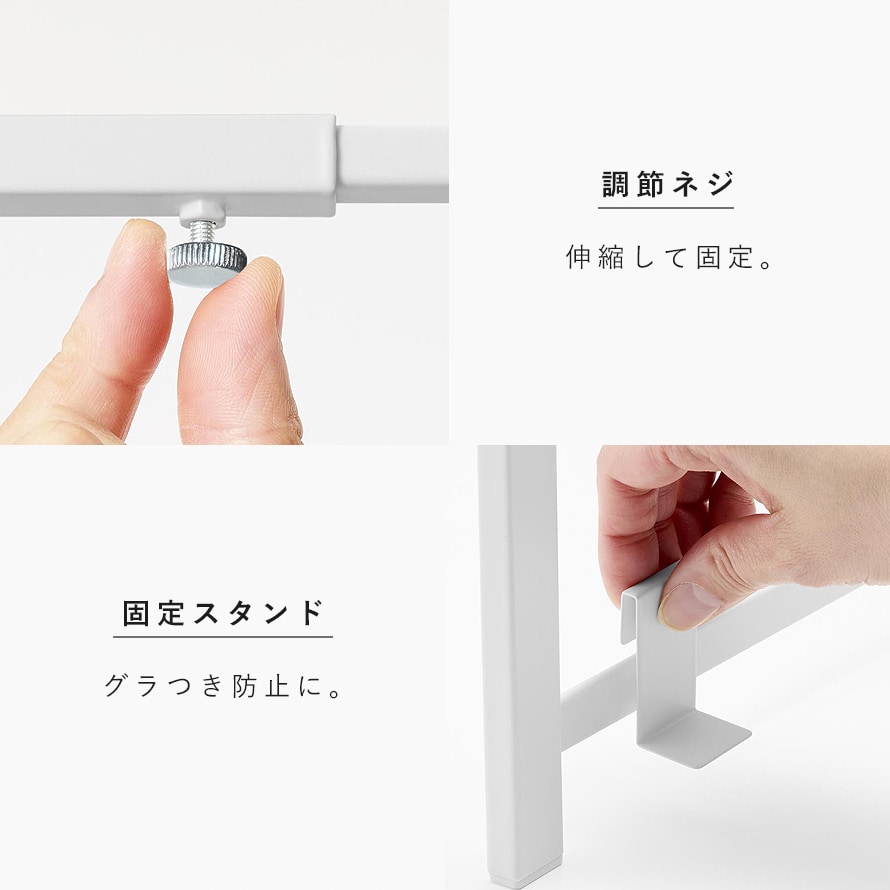 幅が伸縮できるため、設置場所に合わせて調節可能。