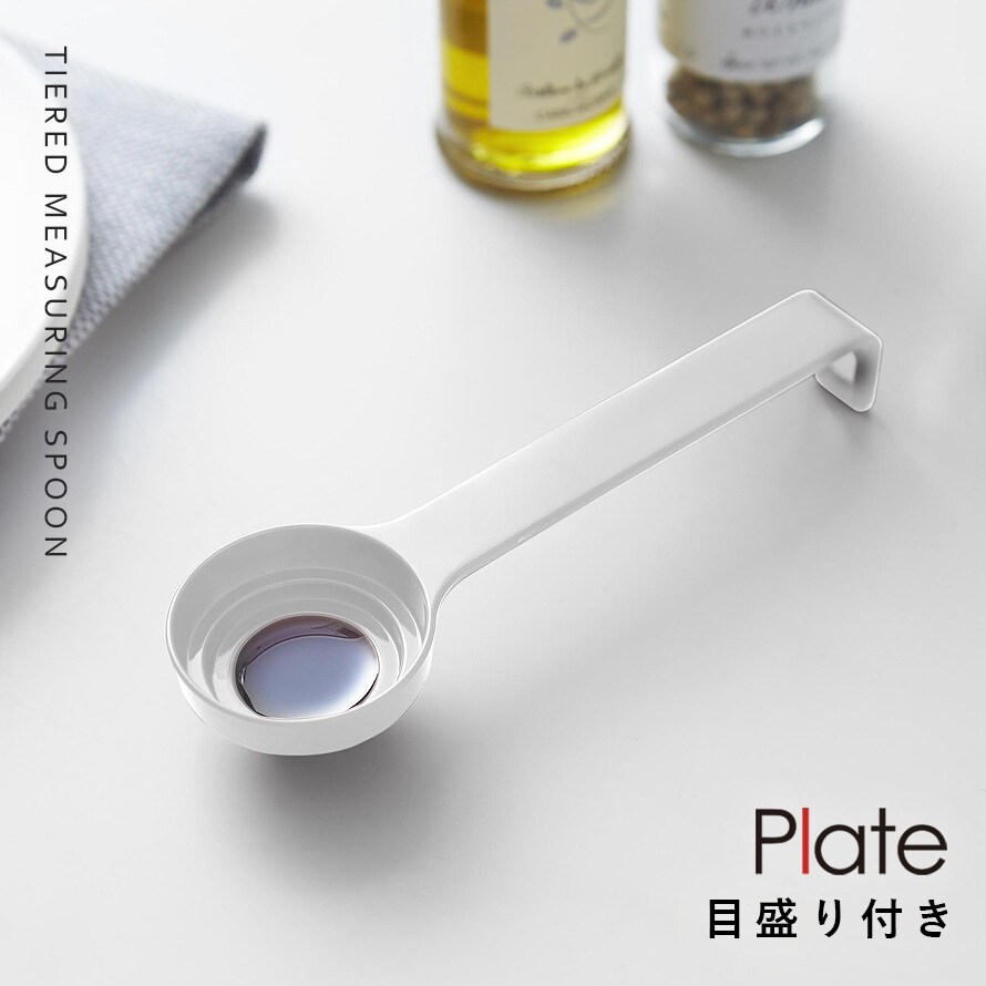 段々計量スプーン プレート ホワイト 山崎実業 plate 大さじ小さじスプーン 計量スプーン 大さじ 小さじ おしゃれ モノトーン ホワイト 10380