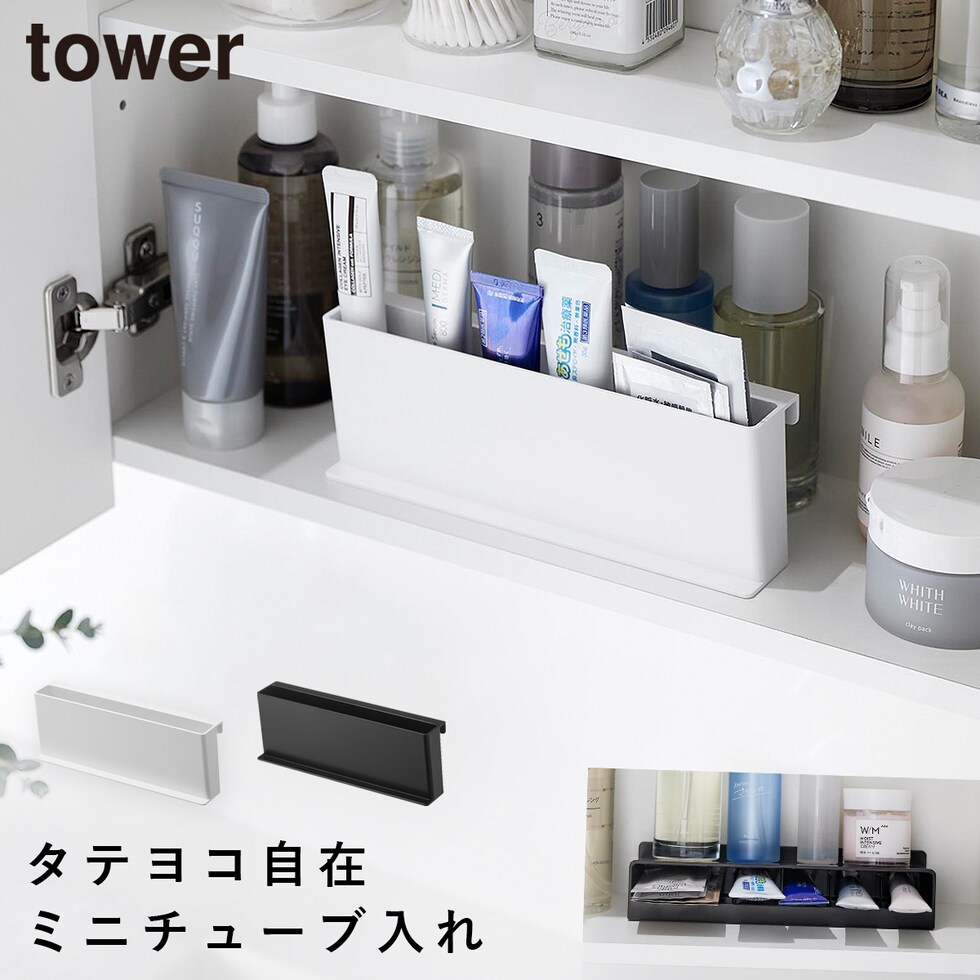 ミニチューブスタンド タワー 山崎実業 tower 洗面台 収納 鏡裏 おしゃれ モノトーン ホワイト ブラック 10383 10384