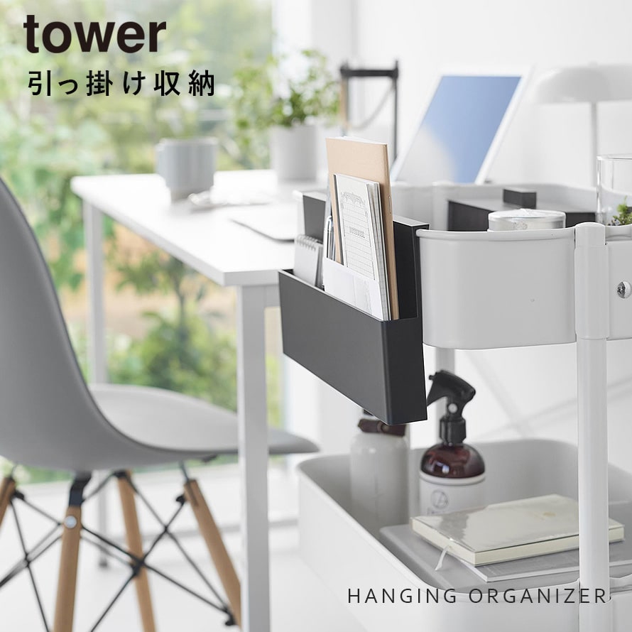 引っ掛け収納ホルダー タワー 山崎実業 tower ファイルボックス ワゴン 引っ掛け 洗面所 小物収納 おしゃれ モノトーン ホワイト ブラック 10385 10386
