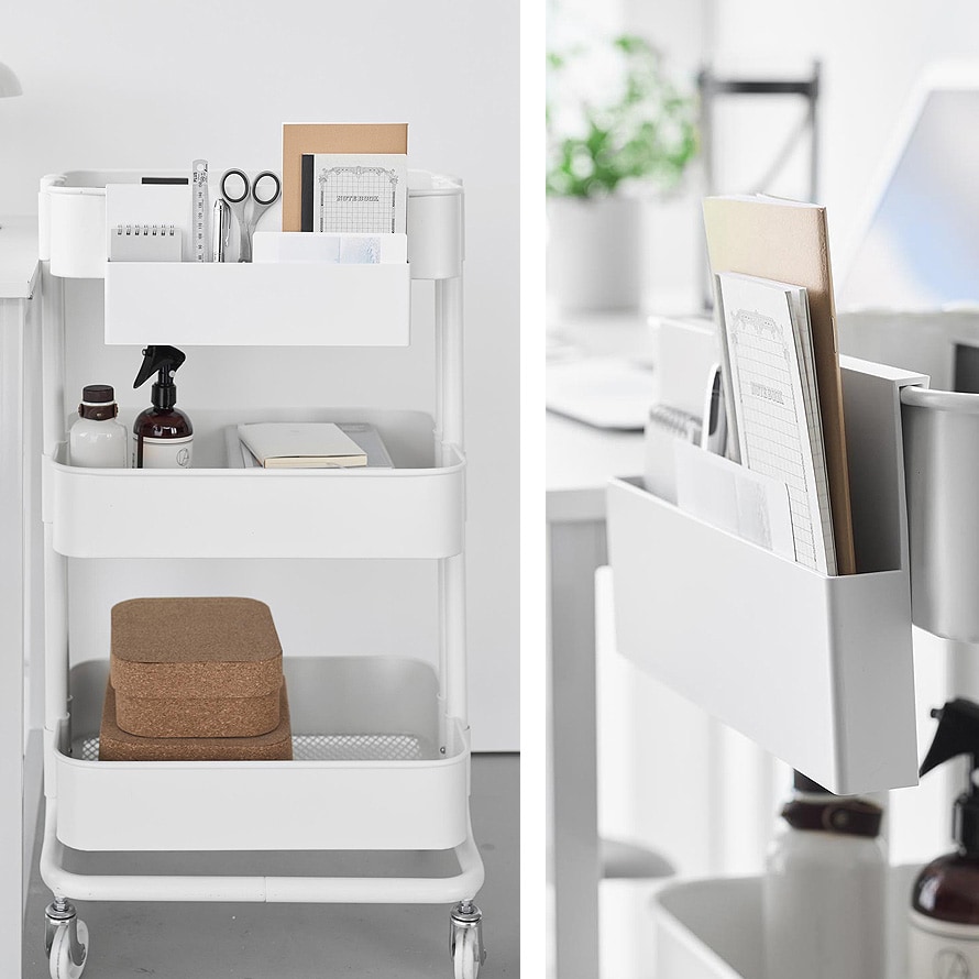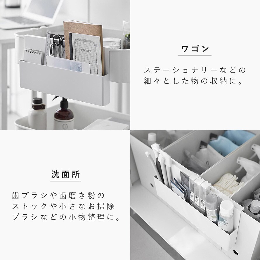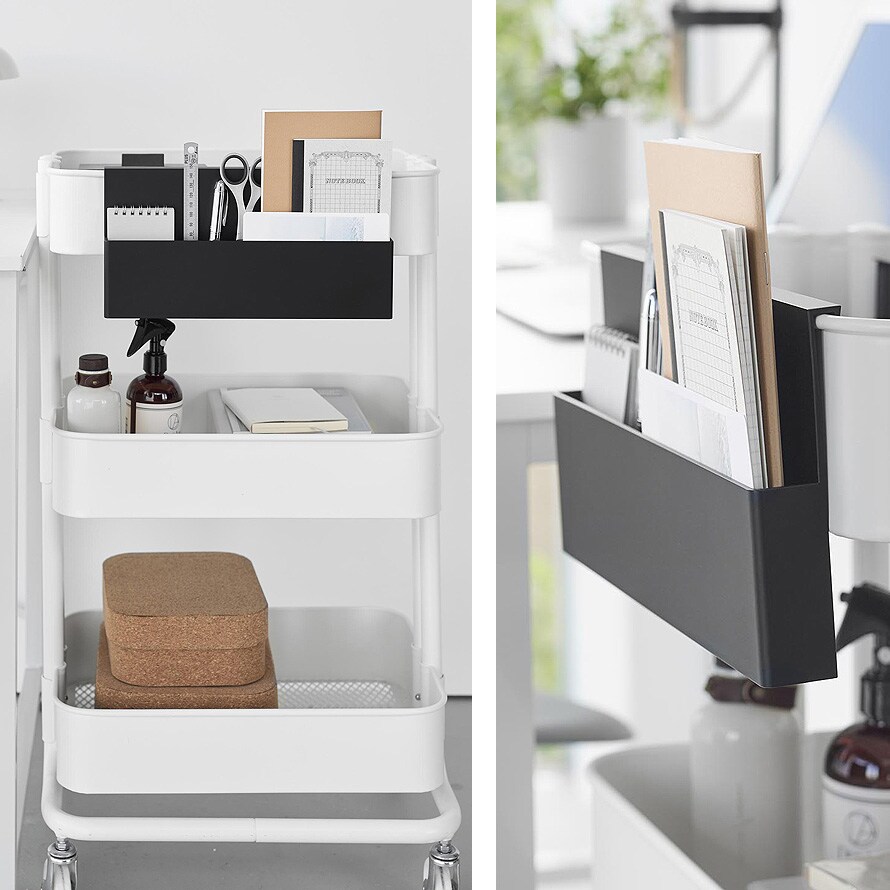 ワゴンに引っ掛けて、ステーショナリーなど細々した物の収納にも役立ちます。