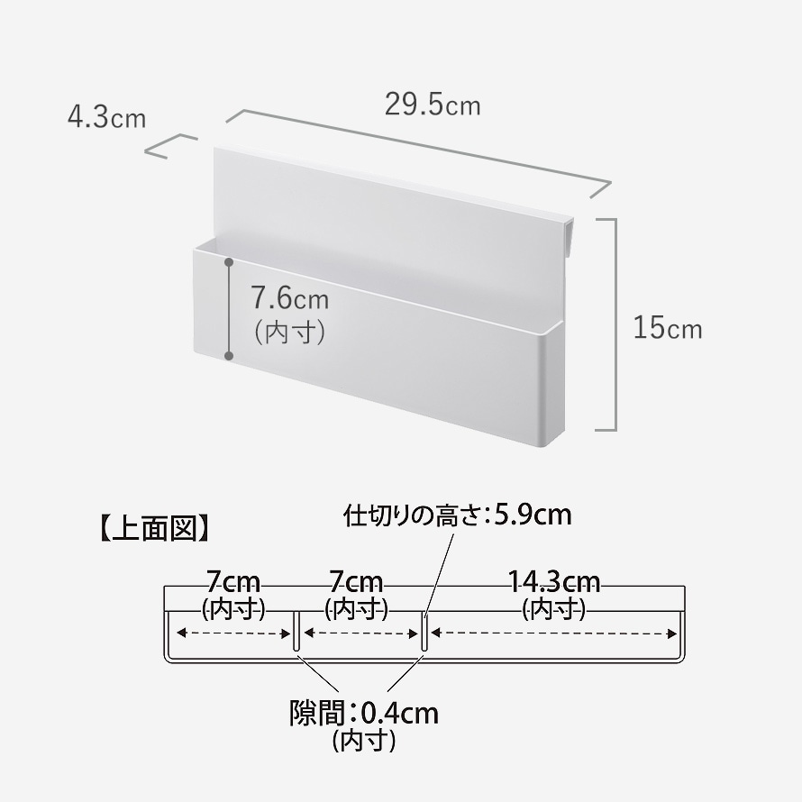 | 内寸サイズ | 収納部(小)1つあたり/幅7×奥行2.5×高さ7.6cm 収納部(大)/幅14.3×奥行2.5×高さ7.6cm(仕切りの高さ/5.9cm) |