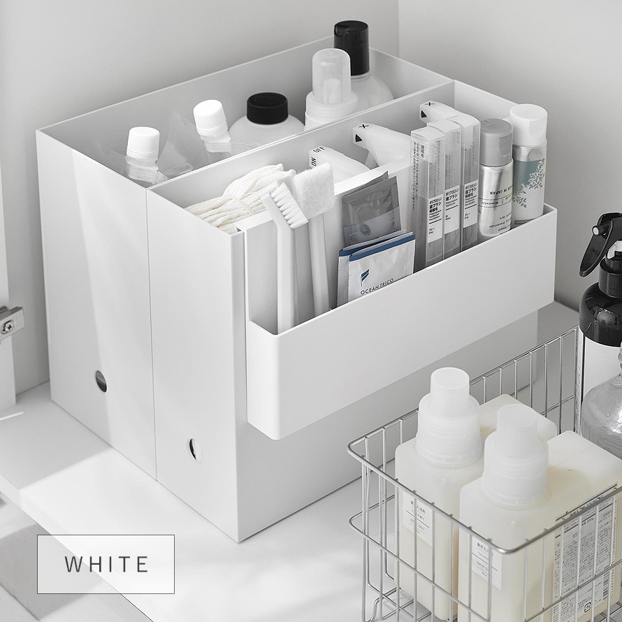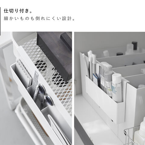 洗面周りの小物整理に便利で、歯ブラシや歯磨き粉のストック、小さなお掃除ブラシなどの収納に便利。