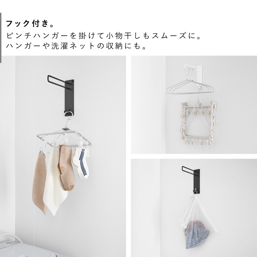 下部にはフック付き。ピンチハンガーを掛ければ、靴下などの小物干しもスムーズに行えます。
