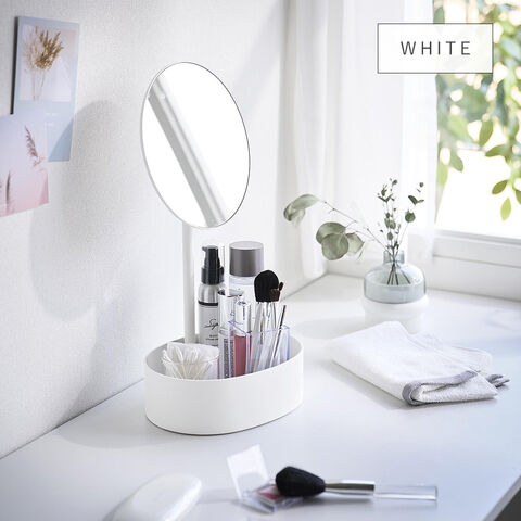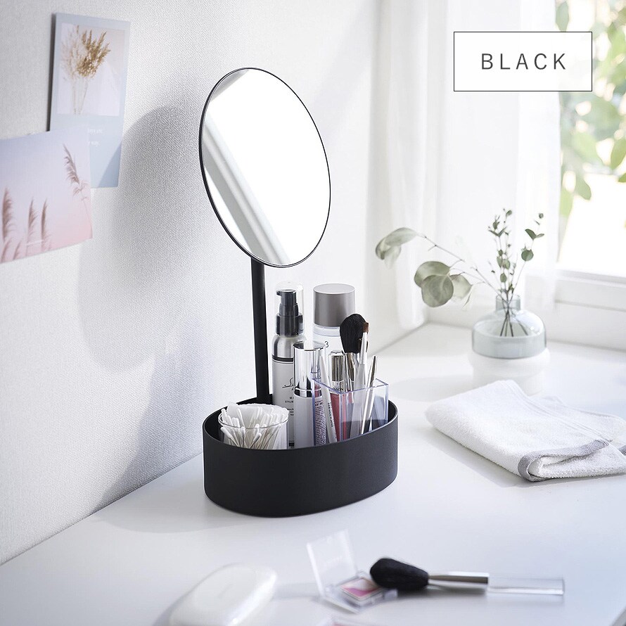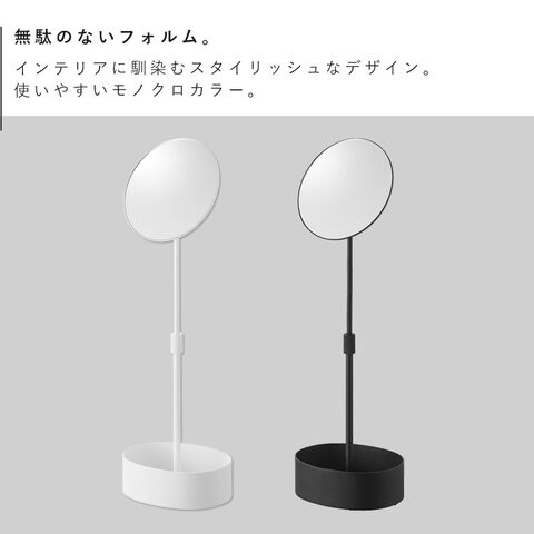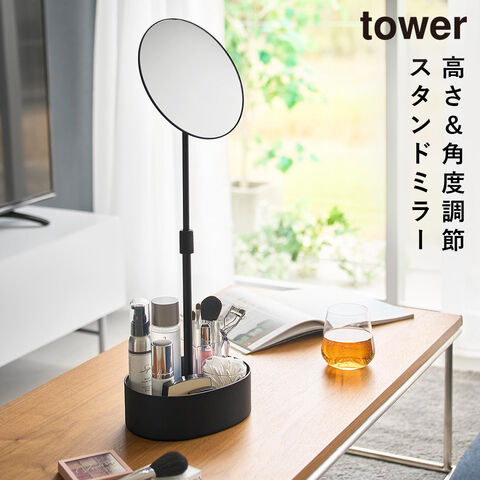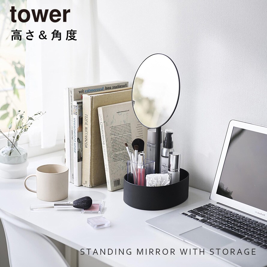 高さと角度が調節できる収納付きスタンドミラー タワー 山崎実業 tower メイクミラー スタンド メイク鏡 化粧鏡 おしゃれ モノトーン ホワイト ブラック 10418 10419