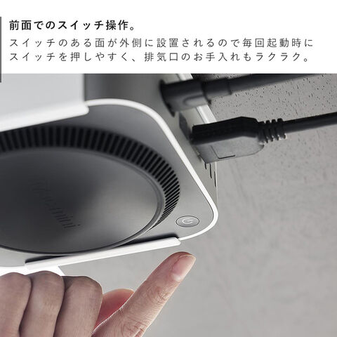 小型PCをキズから守るクッション付きで、スイッチ面が前面にくるように設置できるため操作しやすく、排気口をふさがない安心構造です。