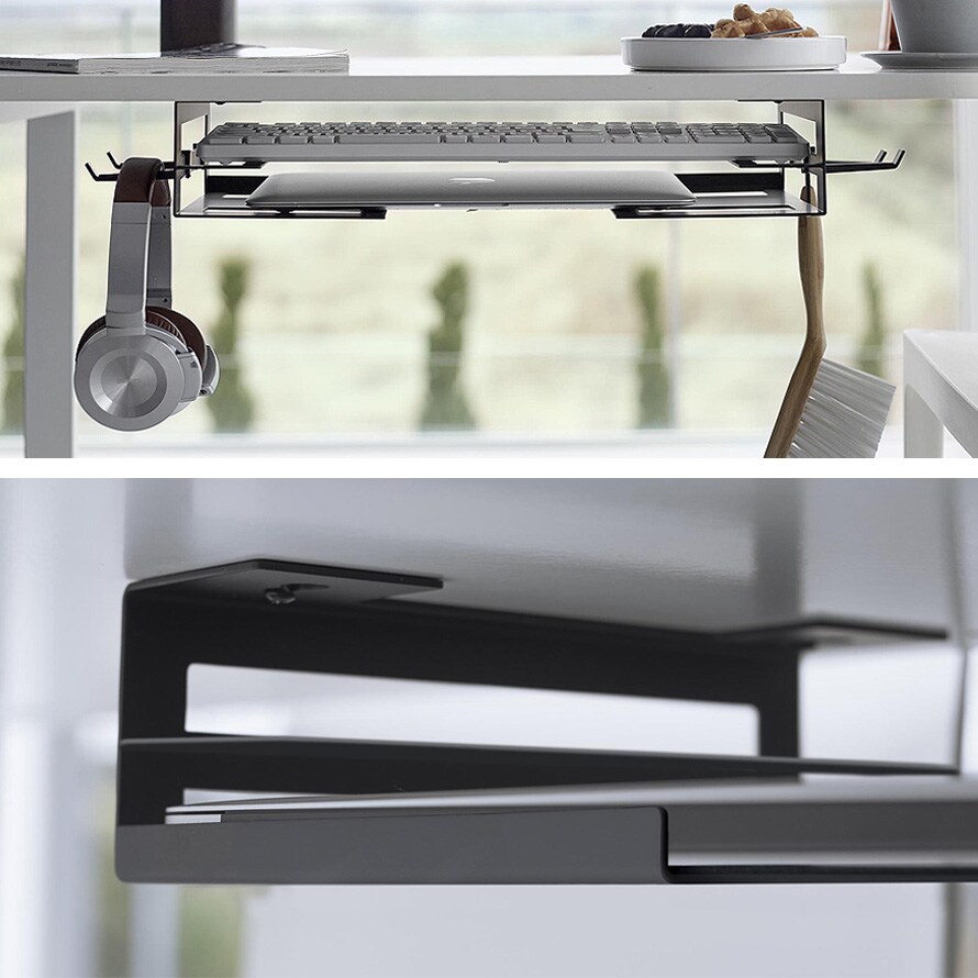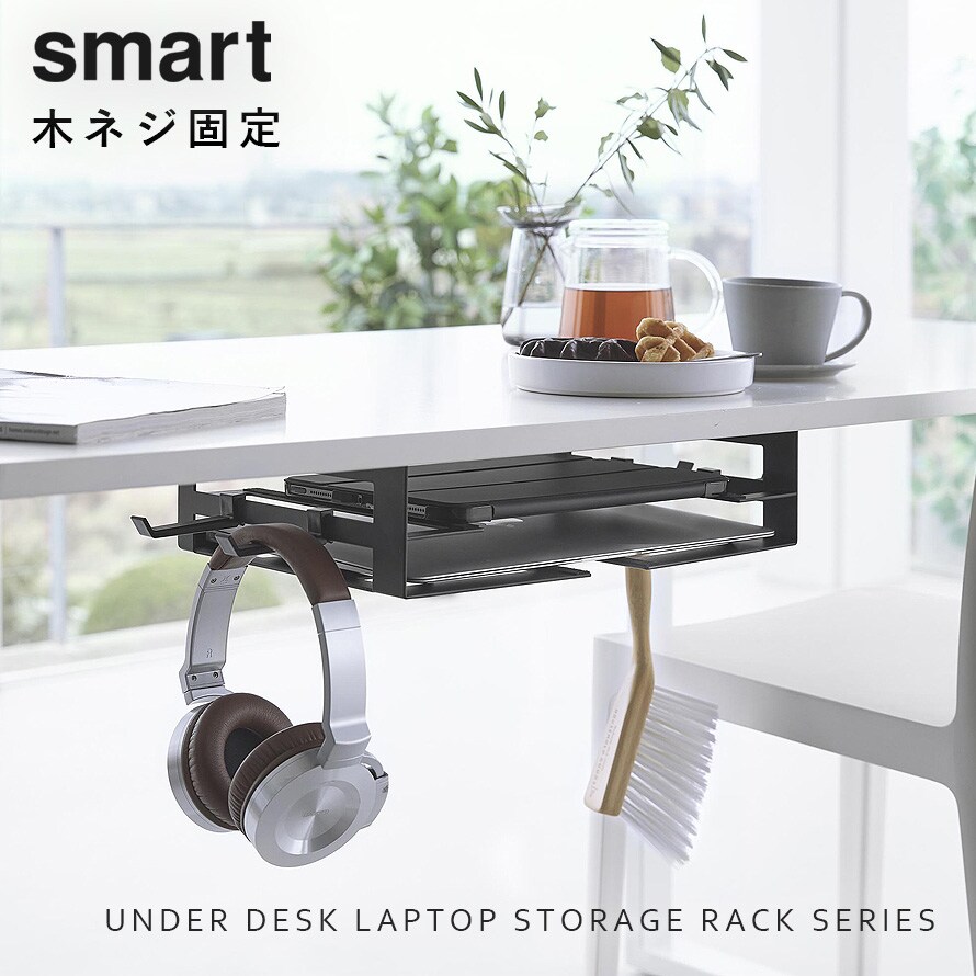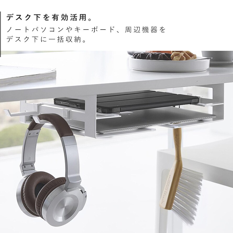 デスク下ノートパソコン&キーボード収納ラック スマート デスク周り 収納 PC収納 デスク下収納 ノートパソコン ラック おしゃれ モノトーン ホワイト ブラック 10426 10427