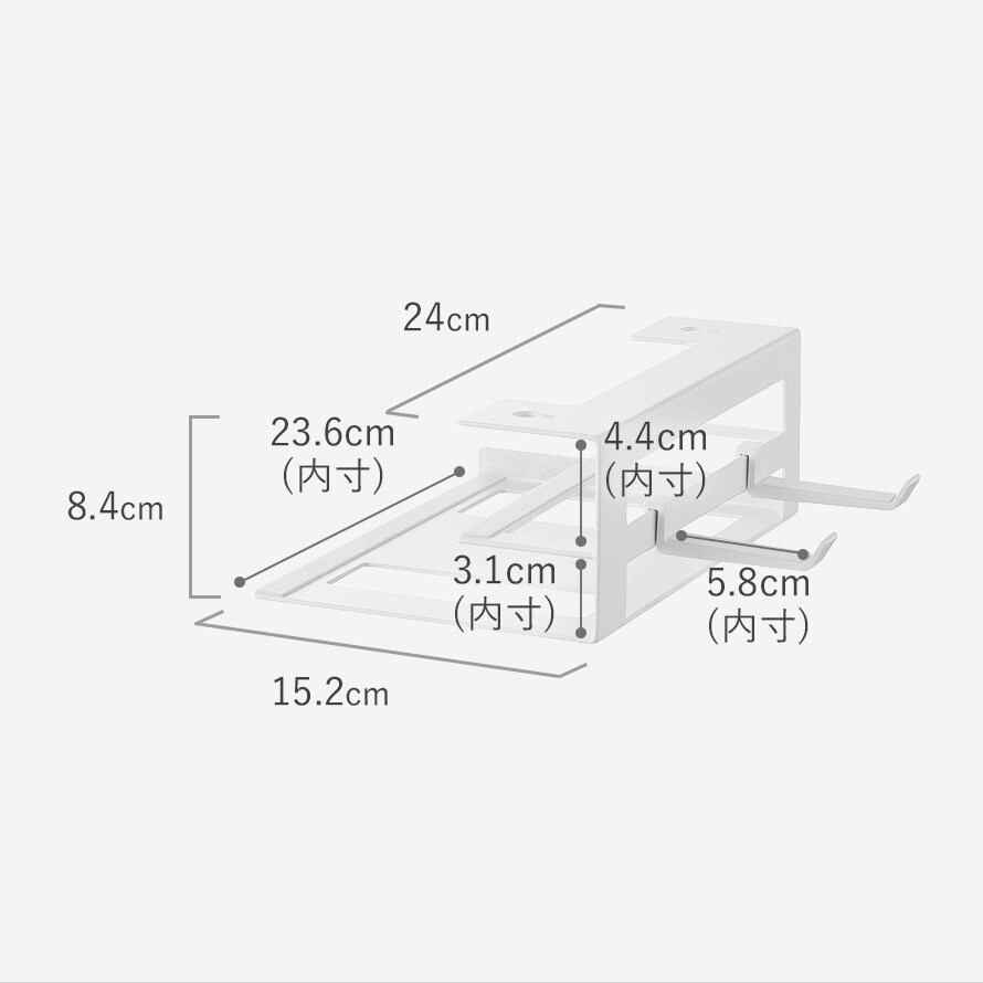 | 耐荷重 | 収納部上段/1kg 収納部下段/2.75kg フック1つあたり/500g(静止荷重) |