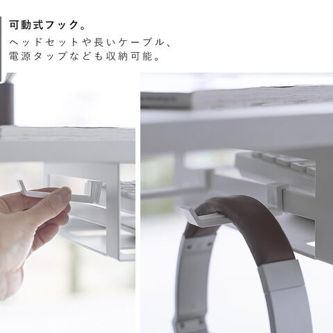 さらに、ヘッドセットや長いケーブル、デスクまわりの小物などを収納できる便利なフック4個付き。