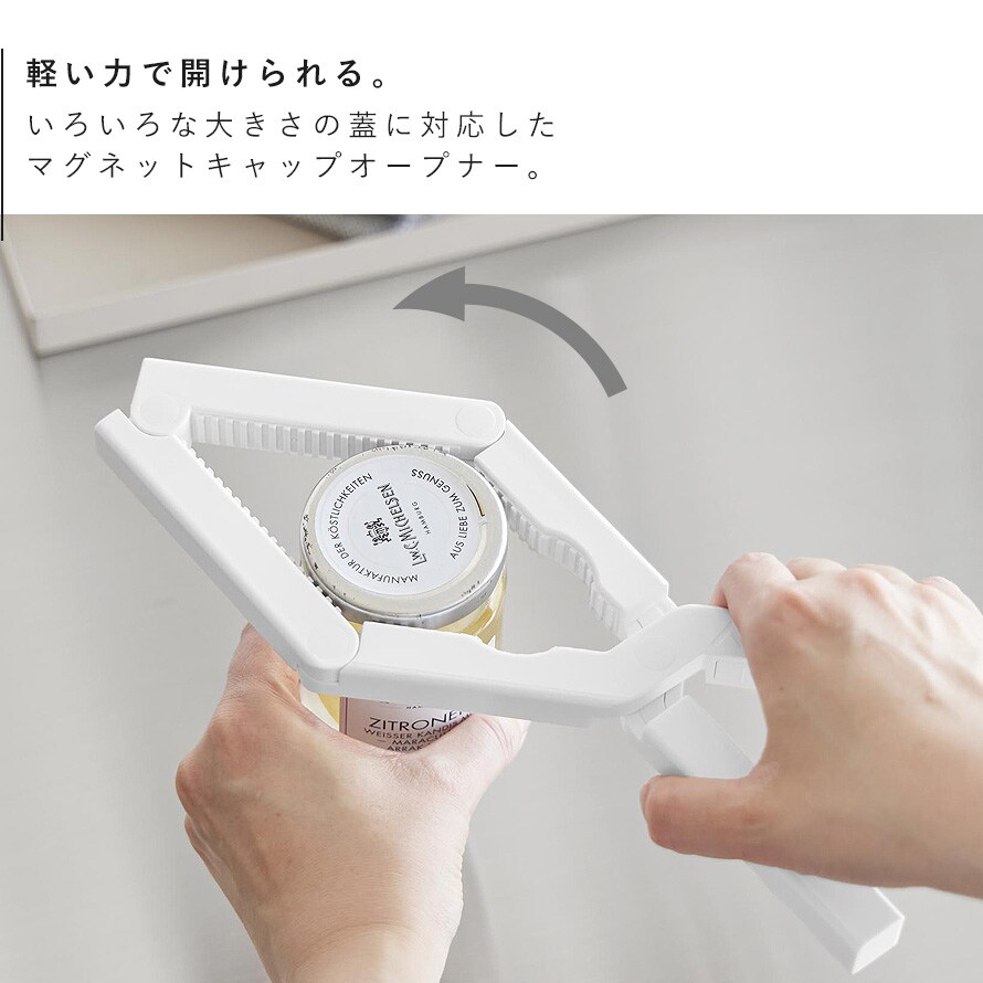 様々なサイズの蓋に対応し、軽い力で簡単に開けられるマグネットキャップオープナーです。