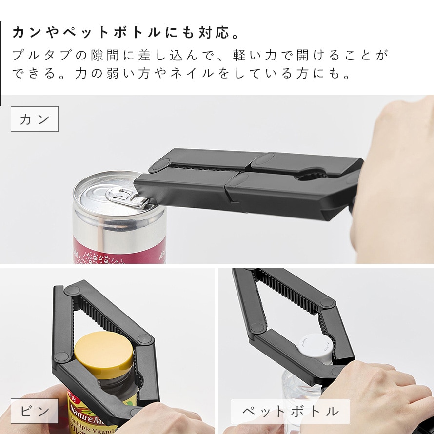 ビンやペットボトルの蓋をしっかりホールドできるので、力の弱い方やネイルをしている方にも安心してお使いいただけます。