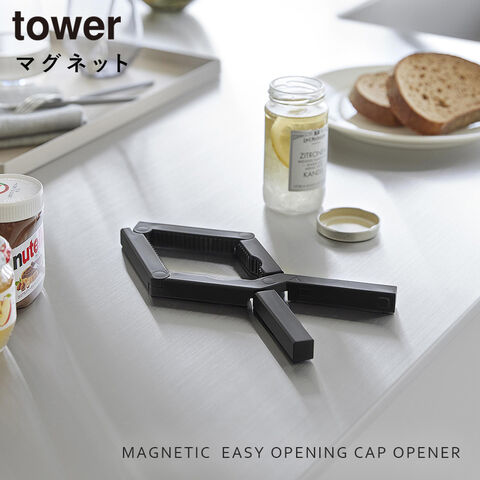 軽い力で開けられるマグネットキャップオープナー タワー 山崎実業 オープナー ペットボトル 蓋開け 瓶の蓋 tower おしゃれ モノトーン ホワイト ブラック 10430 10431