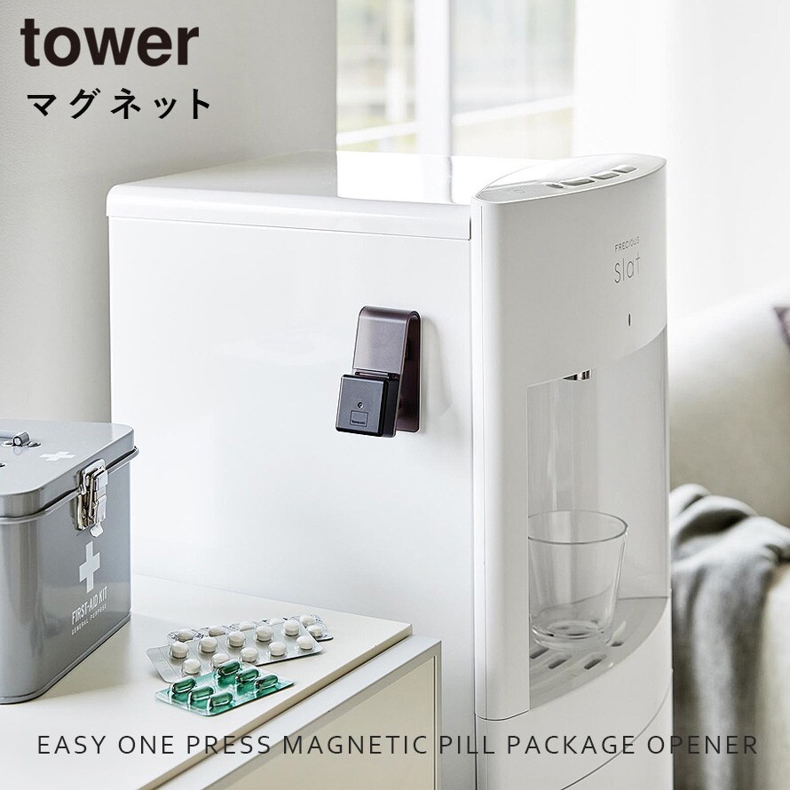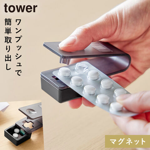 押すだけ簡単マグネット錠剤オープナー タワー 山崎実業 tower 薬 錠剤 取り出し 押し出す おしゃれ モノトーン ホワイト ブラック 10432 10433