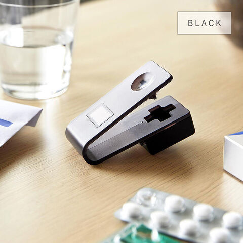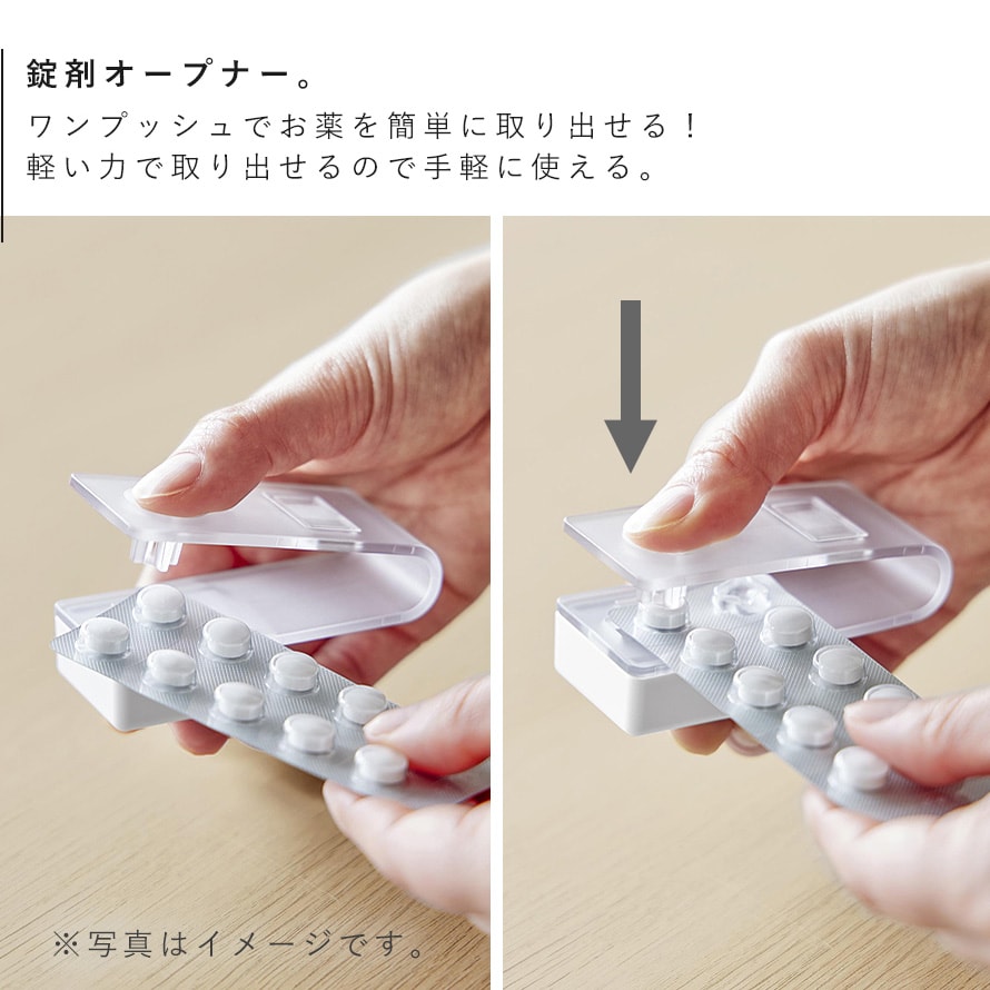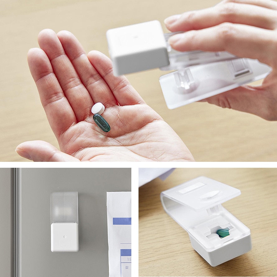 ワンプッシュで簡単に錠剤を取り出せる、マグネット収納対応の錠剤オープナーです。