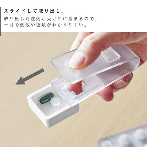 錠剤は受け皿に溜まるので取り出しやすく、スライドするだけでサッと取り出せます。